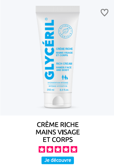 La glycérine est l’ingrédient le plus utilisé dans les formules cosmétiques pour ses propriétés hydratantes, émollientes et protectrices. Son nom est issu du grec « Glykerós », doux. Du fait de sa racine grecque, la marque GLYCÉRIL est comprise dans de très nombreuses langues. En français : glycérine – En anglais : glycerin – En espagnol : glycerina – En portugais : Glicerina- En allemand : glyzerin – En italien : glicerina – En polonais : Gliceryna etc. Soit environ 3 milliards de locuteurs. Biodégradable et renouvelable la glycérine est 100% végétale. Elle est produite à partir d’huiles végétales selon un procédé conforme aux principes de la chimie verte. Développés pour le soin des peaux sèches et sensibles des enfants et des adultes, les produits GLYCÉRIL vous garantissent le confort d’une peau mieux hydratée, plus souple et protégée.